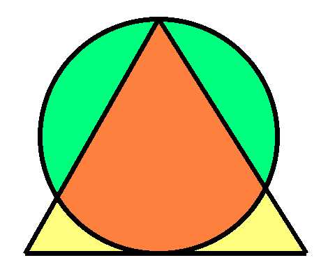 نصف قطر الدائرة هو ١. المثلث متساوي الأضلاع. أوجد مساحة كل منطقة ملونة.