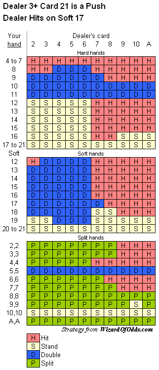 يا إلهي! وفقًا لحساباتي، هذا يُعطي اللاعب ميزة بنسبة 6.4%. أفترض أن القاعدة تُطبق بعد المضاعفة والتقسيم. إليك الاستراتيجية الأساسية لهذه القاعدة.