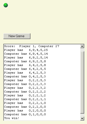 أنا لا أفهم لعبة نيم الخاصة بك! لطالما اعتقدت أن مفتاح الفوز هو ترك خصمك (في هذه الحالة، الحاسوب) مع نقاط مجموعها يساوي العدد الأدنى التالي الذي يساوي مجموعها بالأرقام الثنائية، أي إذا كان لديّ 17 نقطة، فسأأخذ 2 وأترك 15، أي مجموع الأرقام الثنائية 1، 2، 4، 8. لكن يبدو أن هذا لا ينجح. هل أنا على صواب أم خطأ؟