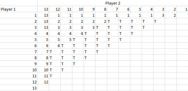 يوضح الجدول التالي كيفية حدوث ذلك. يُظهر نص الجدول الفائز في جميع المباريات الـ 78.