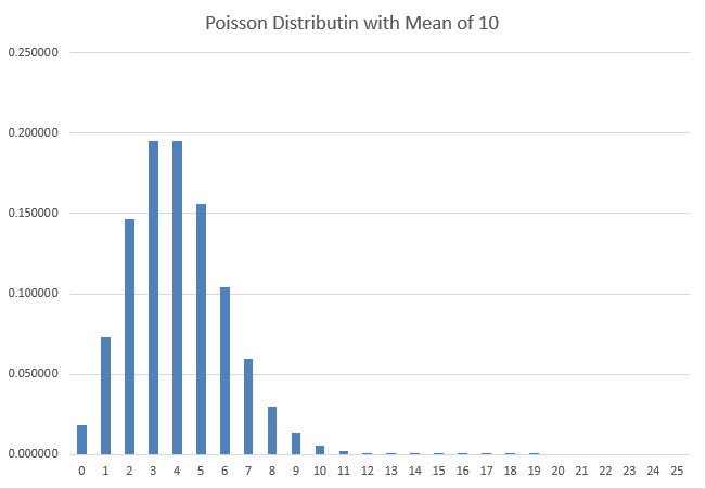السبب الذي جعلني أختار افتراض بواسون هو أنه يتبع شكل منحنى الجرس القريب لمتوسطات كبيرة بما فيه الكفاية والنتيجة الفعلية لا يمكن أن تنخفض أبدًا عن الصفر.