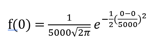 يمكن تبسيط هذا إلى 1/(5000*sqrt(2*π)) =~ 0.000797885 =~ 1 في 1253.314137.