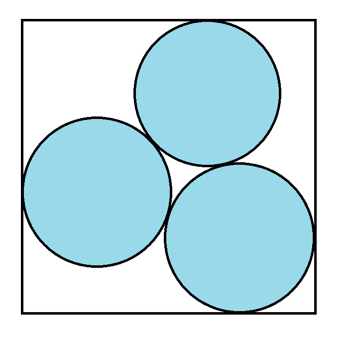 ثلاث دوائر نصف قطرها ١ محفورة في مربع ذي مساحة صغيرة. ما طول ضلع المربع؟