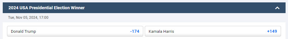 لموازنة رهاناتك في هذه الحالة، لكل دولار تراهن به على هاريس في بيناكل، راهن بمبلغ 1.32 دولار على ترامب في بريديكتت. بمعنى آخر، راهن بنسبة 43.1% على هاريس و56.9% على ترامب.