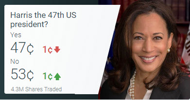 يبدو أنني أستطيع المراهنة على الفائز في الانتخابات الرئاسية لعام ٢٠٢٤ بالمراهنة على هاريس في بيناكل وترامب في بريديكتت. هل أنا محق؟ إذا أردتُ ضمان نفس الربح بغض النظر عن الفائز، فكيف أُقسّم رهاناتي؟