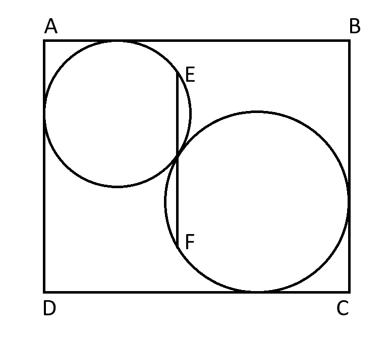 يوجد دائرتان محفورتان في مستطيل ارتفاعه 81. يوجد خط طوله 56 يمتد إلى حافة كلتا الدائرتين ويمر عبر نقطة التقاء الدائرتين وموازيًا للحافة الرأسية للمستطيل.