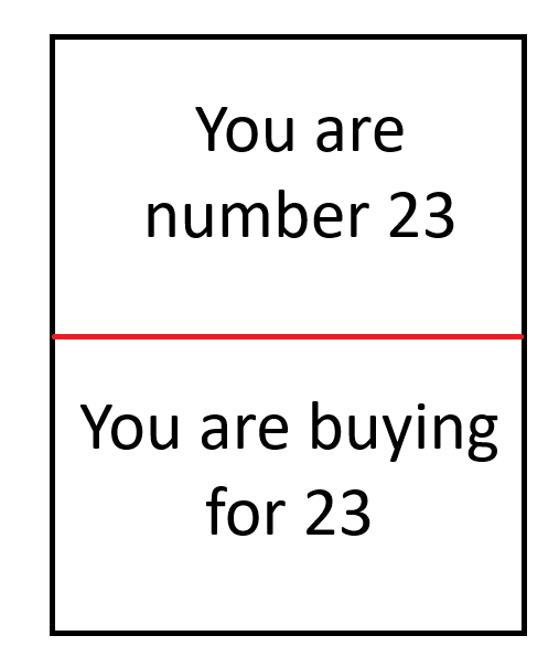 بعد اتباع هذه الإجراءات، سيحصل كل شخص على بطاقتين كُتب عليهما، على سبيل المثال، "أنت الرقم ١٣" و"أنت تشتري للرقم ٧". بعد ملء القائمة، سيعرف الجميع لمن يشتري، لكنهم لن يعرفوا من يشتري لهم.