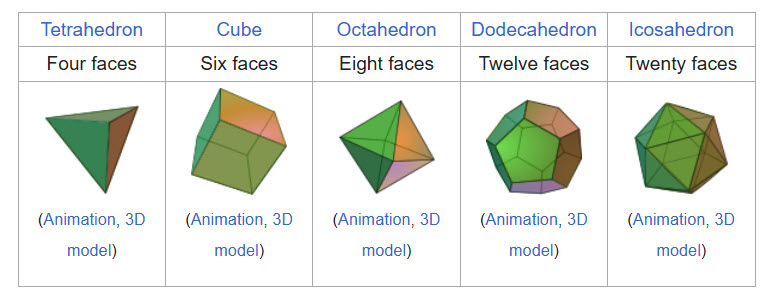 في المتوسط، كم عدد اللفات اللازمة لكل من الأشكال الأفلاطونية الصلبة لتدوير أي جانب تم دحرجته مسبقًا؟