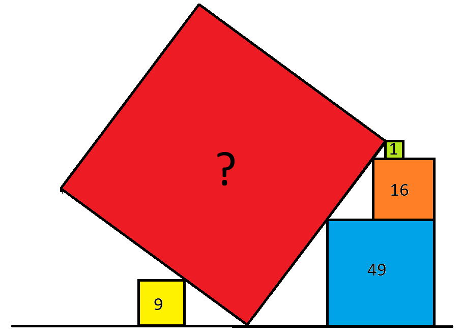 في الصورة أعلاه، تُمثل الأرقام مساحات المربعات الأربعة. ما مساحة المربع الأحمر؟