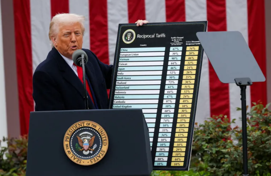 قد تتساءل: "ماذا عن العمود الذهبي في عمود "الرسوم الجمركية المتبادلة المخفضة للولايات المتحدة الأمريكية"؟". هذا ببساطة هو الأكبر من نصف عمود "الرسوم الجمركية المفروضة" و10%. يمكن ملاحظة ذلك بمجرد النظر إلى الجدول.