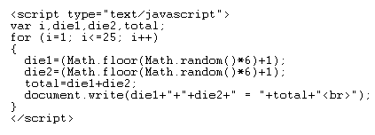 شكراً على الإطراء. كُتب هذا البرنامج بلغة جافا سكريبت. سحب رقم عشوائي هو أمر بسيط من سطر واحد. تُرجع الدالة Math.random() عددًا عشريًا عشوائيًا بين 0 و1. إليك برنامج بسيط لتوليد 25 رمية نرد. عند تحديث هذه الصفحة، ستحصل على نتائج مختلفة في كل مرة.