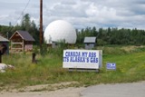 في رأيي، يُعدّ خط أنابيب ألاسكا أحد أعظم قصص النجاح الهندسي في أمريكا، لذا شعرتُ بالفخر لرؤيته لأول مرة. على الجانب الآخر من الطريق السريع، كانت هناك لافتة كبيرة كُتب عليها: "يا كندا، إنه غاز ألاسكا"، وهو شعور قرأته عدة مرات خلال رحلتي. يُشير هذا إلى مقترحات مزدوجة لبناء خط أنابيب ثانٍ للغاز الطبيعي، إما خط قصير متصل بخط أنابيب كندي، أو خط أطول على نفس مسار خط أنابيب النفط الحالي.