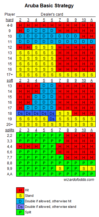 باستثناء بعض الاستثناءات، يبدو أن جميع قواعد البلاك جاك هي استخدام ست مجموعات أوراق، ويدفع البلاك جاك 3-2، ويدفع الموزع 17 ناعمة، ويُضاعف أي ورقتين، ويُسمح بالمضاعفة بعد التقسيم، ويُمنع الاستسلام، ويُمنع إعادة تقسيم الآسات. انتبه، للأسف، بلاك جاك 6-5 قد غزا أروبا. رأيتُ أيضًا لعبة بمجموعتين من الأوراق في كازينو أوركيد بجامعة RIU. أُقدّر تقريبًا أن 60% من الطاولات تستخدم خلطًا آليًا، و30% خلطًا يدويًا، و10% خلطًا مستمرًا. كان معدل الاختراق في النوعين الأولين حوالي 2/3. فيما يلي الاستراتيجية الأساسية وفقًا لقواعد أروبا: