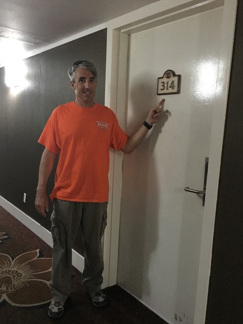 كانت هذه غرفتي في فندق بريكل باي. ما هي الاحتمالات؟ السبب الوحيد لارتدائي بنطالًا طويلًا هو أنني كنت متجهًا إلى المطار، حيث كان عليّ اللحاق برحلة ربط في بوسطن، حيث كانت درجة الحرارة تحت الصفر بكثير.