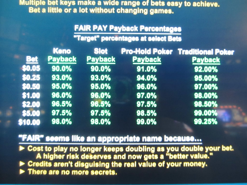 أعتقد اعتقادًا راسخًا أن للاعب الحق في الحصول على معلومات أكثر من هذا. هذا الاعتقاد هو ما دفعني لقضاء ثلاثة أشهر في مسح ماكينات القمار في كل كازينو في لاس فيغاس حتى أتمكن من نشر استبياني الخاص عام ٢٠٠٢ حول نسب عوائد ماكينات القمار بالفيديو ، والذي نشره الفائزون لسنوات.يجب أن أعترف أن الاستبيان أصبح قديمًا. يُسألني بين الحين والآخر إن كنت سأكرره، لكن لا أخطط لذلك. سيستغرق إكماله شهورًا، ولن أجني أي مال مقابل جهودي. مع ذلك، وُلدت فكرة لطريقة أسهل للحصول على معلومات أفضل في عام ٢٠١١.