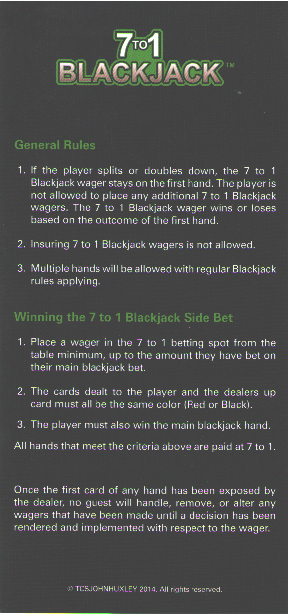 هذا الرهان الجانبي في البلاك جاك يُدفع بنسبة 7 إلى 1 إذا كانت أول بطاقتين للاعب وبطاقة الموزع من نفس اللون، وربح اللاعب رهان البلاك جاك. هناك نسخة أخرى تُسمى بلاك جاك 3 إلى 1، حيث يُشترط أن تكون بطاقات اللاعب فقط من نفس اللون. اللعبة من تصميم جون هكسلي.