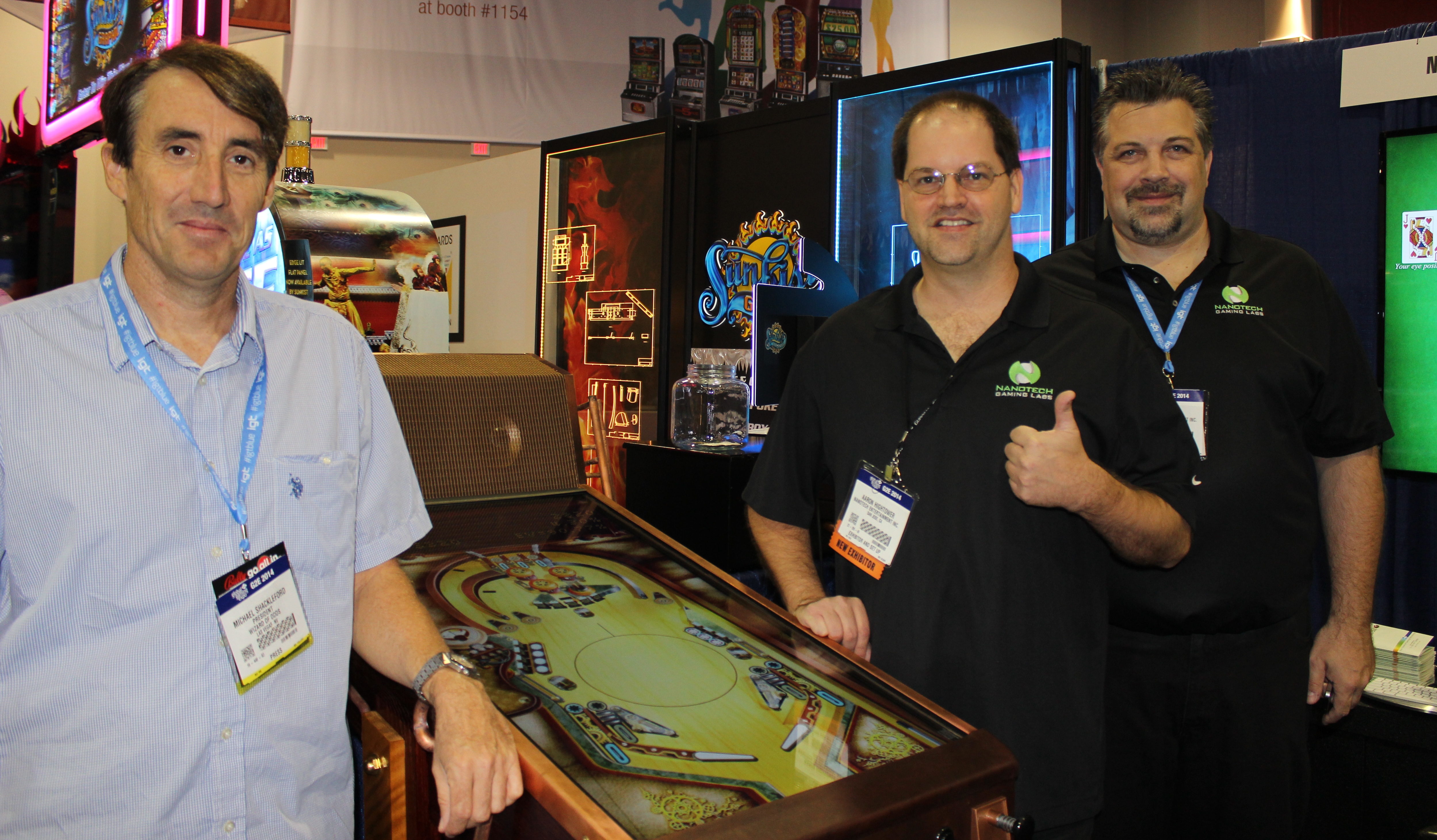 كانت لعبة فيغاس 2047 بينبول الفكرة الأكثر ابتكارًا في المعرض. اللعبة بحد ذاتها تمثيل إلكتروني واقعي للغاية للعبة بينبول. بدت الخزانة كجهاز نحاسي معدني قد تجده في إحدى ألعاب ميست. قيل لي إن هذا النمط يُسمى ستيم بانك .