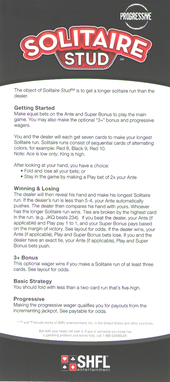 لعبة سوليتير ستاد تُشبه إلى حد كبير لعبة هاي كارد فلش ، إلا أنها لا تعتمد على أطول سلسلة فلش، بل على أطول سلسلة سوليتير، أي سلسلة من الألوان المتناوبة. مع إضافة رهانين جانبيين بالطبع. من إنتاج SHFL Entertainment.