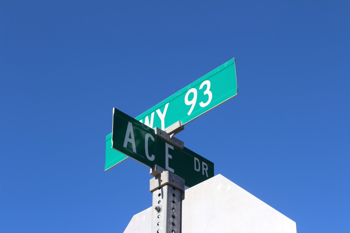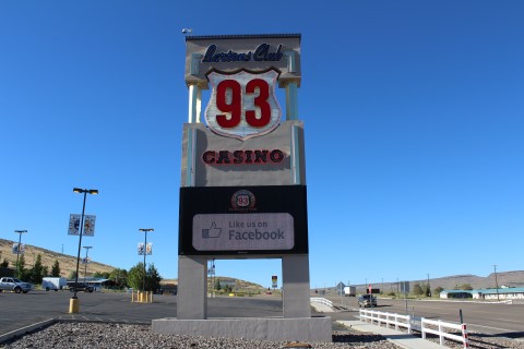 - تقع لافتة الطريق السريع المكتوب عليها "دخول منطقة المحيط الهادئ" جنوب جاكبوت مباشرةً. هناك مساحة كافية على الطريق السريع لوضع اللافتة بجوار لافتة "مرحبًا بكم في نيفادا".