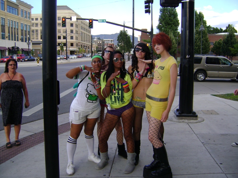 لم تكن هذه هي الصورة التي تخيلتها تمامًا عن سولت ليك سيتي قبل الرحلة. تخيلوا دهشتي لرؤية هذه المجموعة من الفتيات الصغيرات يمشين في الشارع. قلتُ لجوستين إنني أرغب في التقاط صورة لهن، لكنني خجلتُ من السؤال. لم تكن جوستين خجولة أبدًا، فأمسكت بكاميرتي وسألتهما إن كان بإمكانها التقاط صورة، فقامتا بالتقاطها برقة. أعجبتني السيدة المصدومة على اليسار.