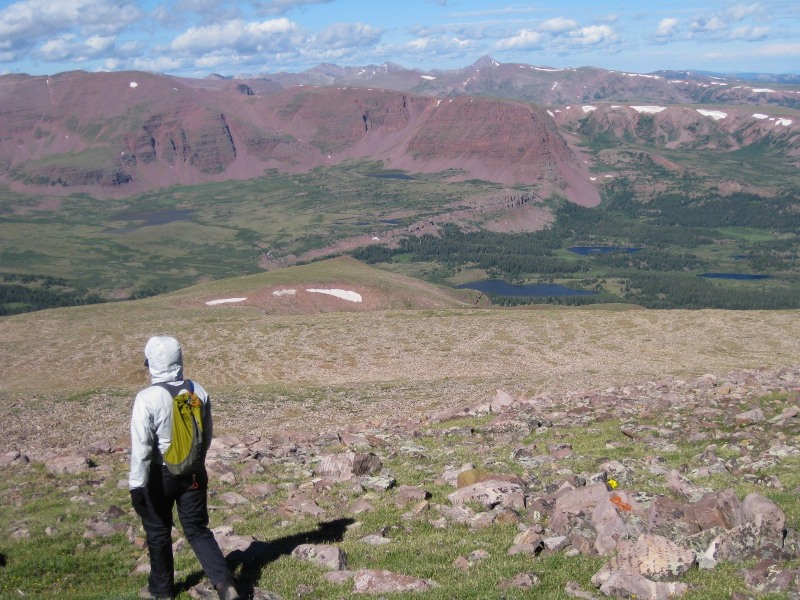 انطلقنا مبكرًا يوم السبت في محاولة للتغلب على عواصف ما بعد الظهر المعتادة التي حذرنا منها جويل. انطلقنا جنوبًا حتى نهاية مجرى التصريف. خلال ذلك، تعطلت حقيبة ظهري. انفصل حزام حقيبتي اليسرى عن حقيبة الظهر القديمة التي أستخدمها منذ 25 عامًا. لحسن الحظ، كان لدى هارلان، المُجهز جيدًا، رباط حذاء إضافي استخدمته لإصلاح مشكلة فقدان مسمار. ثم صعدنا وتجاوزنا غانسايت نوتش. بعد هذه النقطة، كان هناك وادٍ جميل يفصلنا مباشرةً عن كينغز بيك. هل عبرنا هذا الوادي المستوٍ الجميل سيرًا على الأقدام؟ لا... اضطر أحدهم لوضع مجموعة من الأكوام الحجرية في الصخور على طول حافة قمة أخرى على يميننا. لقد خدعتنا هذه الأكوام الحجرية الزائفة وقضينا حوالي ساعة نتسلق الصخور دون داعٍ.