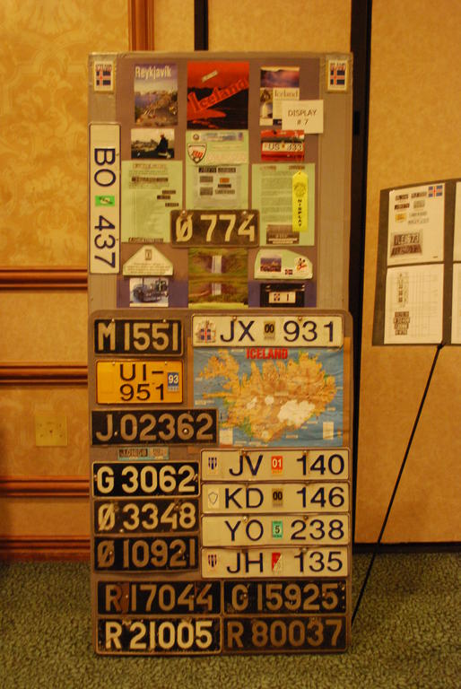 لوحات ترخيص أيسلندا. شخصيًا، أحاول الحصول على لوحات ترخيص لكل دولة أزورها. زرت هناك عام ٢٠٠٠، ولديّ بعض لوحات ترخيص أيسلندا في مجموعتي كتذكارات، مع أنني حصلت عليها بعد عودتي.