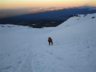كان من المقرر أن نغادر الساعة ١٢:٣٠ صباحًا ذلك اليوم، وأن نلتقي بالرفيقين الآخرين عند بحيرة هيلين حوالي الساعة ٤:٣٠ صباحًا لتسلق القمة. كان لدى رفيقيّ سيارات دافئة للنوم فيها، لكنني اضطررتُ للنوم في خيمتي المنصوبة في موقف السيارات. بسبب المحادثات الصاخبة، والسيارات ذهابًا وإيابًا، وبعض عربات الثلج الصاخبة جدًا، لم أنم سوى ساعتين خفيفتين تقريبًا.