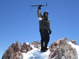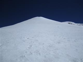 الراحة والقدرة على رؤية خط النهاية بوضوح أعادا لي نشاطي، فقد استعدت نشاطي ووصلت إلى القمة في وقت مناسب. وكما هو متوقع، كانت الرياح شديدة على القمة، لكن اليوم كان صافيًا وجميلًا، مما أتاح لي رؤية الوادي أسفله وعدة قمم أخرى في سلسلتي كاسكيد وترينيتي. التقطتُ صور القمة الإلزامية وفيلمًا بانوراميًا بزاوية 360 درجة. مع ذلك، كان الثلج يزداد كثافة مع مرور الوقت، لذلك لم نتأخر كثيرًا.