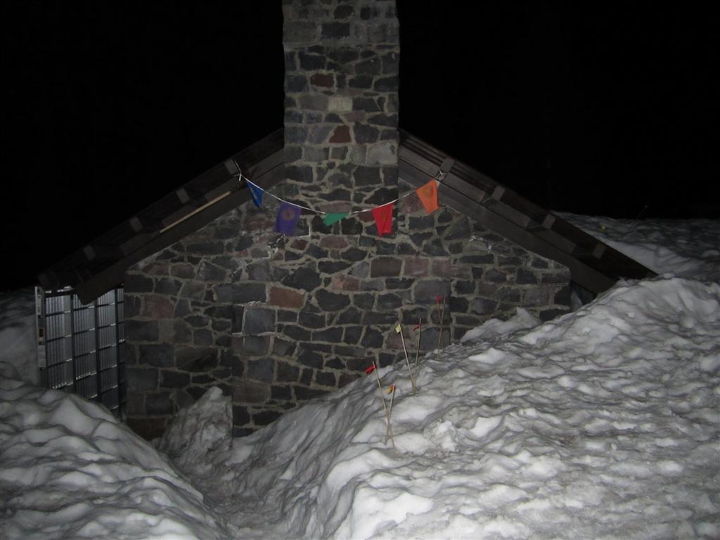في النهاية، رأينا مصابيح رؤوس المتنزهين الآخرين. عدنا إلى الطريق، ولكن أبعد مما كنا نأمل.كنا قد خططنا لتوقف ضروري عند مأوى ومنبع مخيم الخيول لنتزود بالماء. اضطررنا للعودة أدراجنا للوصول إلى هناك. كان من الصعب العثور على الكوخ في الظلام، لأن سقفه فقط كان مكشوفًا بسبب تساقط الثلوج الكثيفة. إجمالًا، كلّفنا الضياع حوالي ساعة من الوقت. قد لا يبدو هذا كثيرًا، ولكن عندما تواجه تحديًا جسديًا هائلًا، فأنت تريد أن تكون فعالًا قدر الإمكان. في مجال الفعالية، كانت بدايتنا سيئة للغاية.