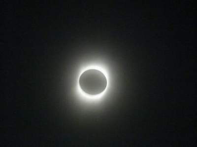 لا توصف الكلمات ترقبي خلال الثواني الأخيرة من ضوء الشمس. تدريجيًا، أصبح هلال الشمس أرقّ فأرق، وازدادت السماء ظلمةً. عندما لم يبقَ من ضوء الشمس إلا شعاعًا خفيفًا، تجاهلتُ النصائح التي سمعتها لسنوات وخلعتُ نظارتي. راقبتُ الشمس لبضع ثوانٍ بعيني المجردة. في ذلك الوقت، يستطيع من يستخدمون التلسكوبات والعدسات الواقية رؤية الشمس وهي تتحرك بين جبال القمر. بدت لي كنقطة شديدة السطوع في السماء، كنجم.