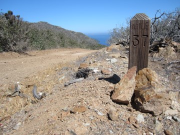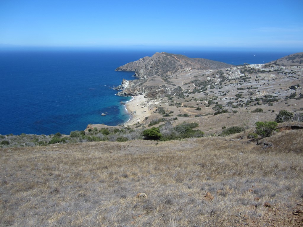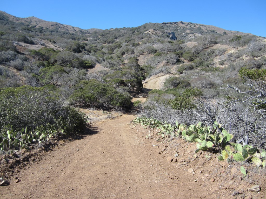 كان هذا الجزء من المسار شديد الانحدار، شديد الحرارة، ومملاً. كان يمتد على طول طريق ترابي، مع قلة الإطلالات الجيدة على المناظر الطبيعية الخلابة. اضطررنا لتقنين استهلاكنا للمياه لأننا لم نحمل معنا سوى كمية محدودة، وكنا نشعر بعطش شديد. على الأقل قرب القمة، كانت هناك إطلالات على جزيرة سانتا باربرا، التي لم أرها من قبل، لأنها بعيدة جدًا عن الساحل بحيث لا يمكن رؤيتها من البر الرئيسي. بمجرد أن وصلنا أخيرًا إلى القمة، كان المنحدر شديد الانحدار بنفس القدر. كل نصف ميل تقريبًا، كانت هناك شجيرة توفر ظلًا خفيفًا، ولكن بخلاف ذلك، كان هذا الجزء من المسار مكشوفًا تمامًا لأشعة الشمس الحارقة.