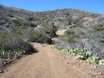 كانت الخطة البديلة، التي اخترتها، هي الغش وتخطي أول 6.5 ميل من المسار. بدلاً من ذلك، استقللنا حافلة أفالون إلى هيرميت غالتش، حيث بدأنا رحلتنا. ثم اتجهنا صعودًا على طول المسار الذي يبلغ طوله حوالي 1.5 ميل من هيرميت غالتش إلى خط التلال وطريق TCT. هذا المسار الجانبي شديد الانحدار، وحار، ومليء بالمنعطفات، وليس خلابًا. ومع ذلك، عندما تصل أخيرًا إلى خط التلال والمسار الرئيسي، يصبح الطريق أكثر استواءً، وستُكافأ بمناظر خلابة، بما في ذلك جزيرة سان كليمنتي، وهي الجزيرة الواقعة خلف كاتالينا.