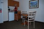 عندما أقمت هناك ليلة أربعاء، كانت غرفتي ٣٩ دولارًا أمريكيًا بالإضافة إلى ضريبة غرفة نيفادا بنسبة ١٢٪ (كانت الضريبة قد ارتفعت للتو). لم يكن هناك انتظار في استقبال الفندق. قيل لي إن تكلفة الليلة الثانية ٢٢ دولارًا أمريكيًا فقط. نسيتُ إحضار شريط القياس، لكن حجم الغرف كان ضعف حجم غرفة فندق عادية تقريبًا. كانت غرفتي الأساسية تحتوي على مطبخ وطاولة وأريكة وسرير وحمام واسع.