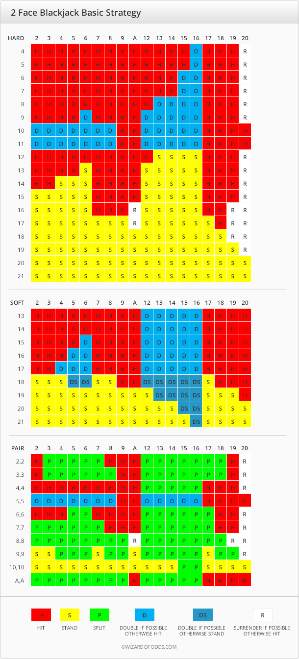 بلاك جاك ذو الوجهين هو أحد أشكال البلاك جاك، حيث يكشف الموزع ورقته المخفية إذا كانت ورقته المكشوفة أي ورقة مكشوفة. وللتعويض عن ذلك، تستخدم اللعبة مجموعات من 48 ورقة بدون عشرات، ويدفع بلاك جاك الفائز مبلغًا متساويًا. رأيت اللعبة لأول مرة في كازينو باريس بلاس فيغاس في 18 نوفمبر 2013.