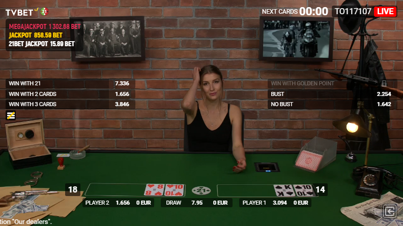 في نسخة 21 Bet المقدمة من TvBet، يقوم اللاعب بالمراهنة في كل مرحلة من مراحل اللعبة على من سيفوز أو سيتعادل، أو عدد البطاقات في اليد الفائزة، أو عدد النقاط في اليد الفائزة، أو ما إذا كان أي من اللاعبين سوف يخسر.