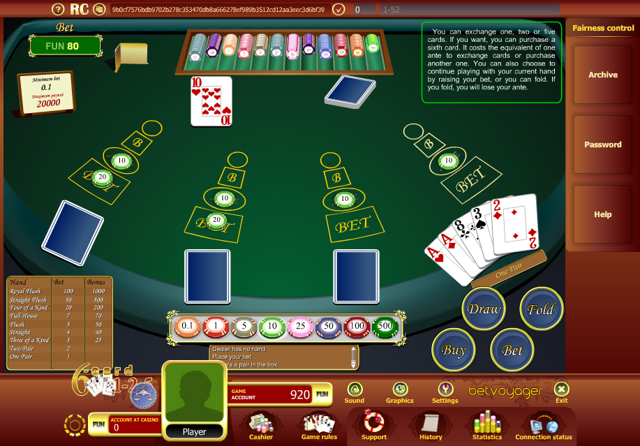 - التبادل : يدفع اللاعب رسومًا تساوي رهانه الأولي لتبادل بطاقة واحدة أو اثنتين أو كل البطاقات الخمس.