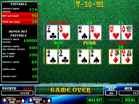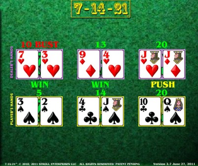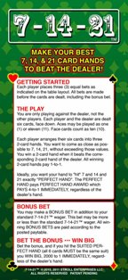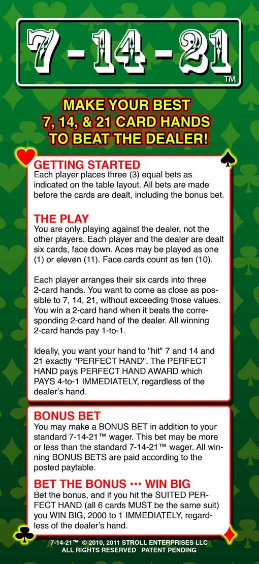 7-14-21 هي لعبة طاولة لاحظتها لأول مرة في فندق Palms في صيف عام 2011. وقد تم لعبها سابقًا في فندق Grand Biloxi في أواخر عام 2010.