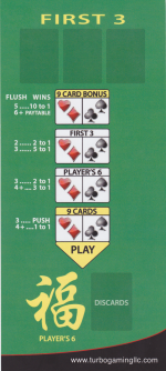 فيما يلي جدول الدفع لرهان اللاعب رقم 6، والذي يعتمد على البطاقات الستة الموزعة بعد البطاقات الثلاث الأولية.