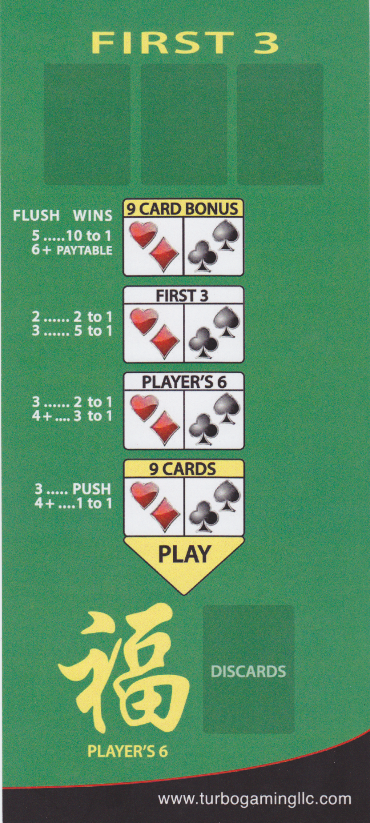 فيما يلي جدول الدفع للرهانات الثلاثة الأولى، والذي يعتمد على البطاقات الثلاث الأولى للاعب.