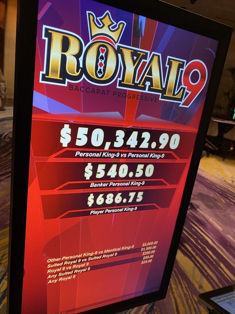 رهان رويال 9 هو رهان جانبي تصاعدي في الباكارات. مبلغ الرهان 5 دولارات. تعتمد المكاسب على امتلاك يد اللاعب و/أو الموزع "رقم رويال 9"، وهو رقم يُعرّف بأنه رقم تسعة وأي بطاقة مكشوفة. بعض المكاسب تعتمد على تطابق يد اللاعب و/أو الموزع مع يد رويال 9 مطبوعة في كل موضع رهان. يتم تسويق هذا الرهان الجانبي بواسطة AGS.