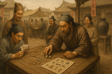 للمقامرة في الصين تاريخٌ يمتد لآلاف السنين. ففي العصور القديمة، كان الناس يجتمعون في الشوارع، وفي المقاهي، وفي الأسواق، حيث تُلعب ألعاب الحظ المتنوعة. وكانت البطاقات والنرد وألعاب بسيطة تُشبه اليانصيب اليوم جزءًا من الحياة اليومية .