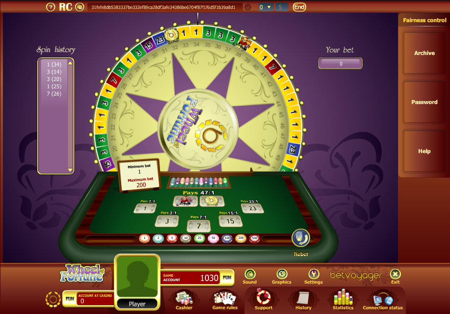 كازينوهات الإنترنت التي تستخدم برنامج Gamesys تقدم لعبتي عجلة الحظ. كلتاهما مزودة بعجلة ذات 49 نقطة توقف، بجوائز 1 دولار، 3 دولارات، 7 دولارات، 15 دولارًا، 23 دولارًا، و47 دولارًا. يوضح الجدول التالي عدد نقاط التوقف لكل فوز، وقيمة المكافأة، واحتمالية الفوز، ونسبة ربح الكازينو. كما ترون، تبلغ نسبة ربح الكازينو 2.04% لكل رهان. هذه أفضل لعبة Big Six/Wheel of Fortune رأيتها على الإطلاق.