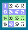 - يتم لعب اللعبة على بطاقات البينغو 4 × 4، كل منها تحتوي على 16 رقمًا عشوائيًا من 1 إلى 80.