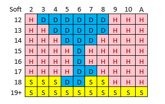 بالنسبة لأي مجموع ناعم، يجب على اللاعب اتباع جدول الاستراتيجية الأساسية التالي.