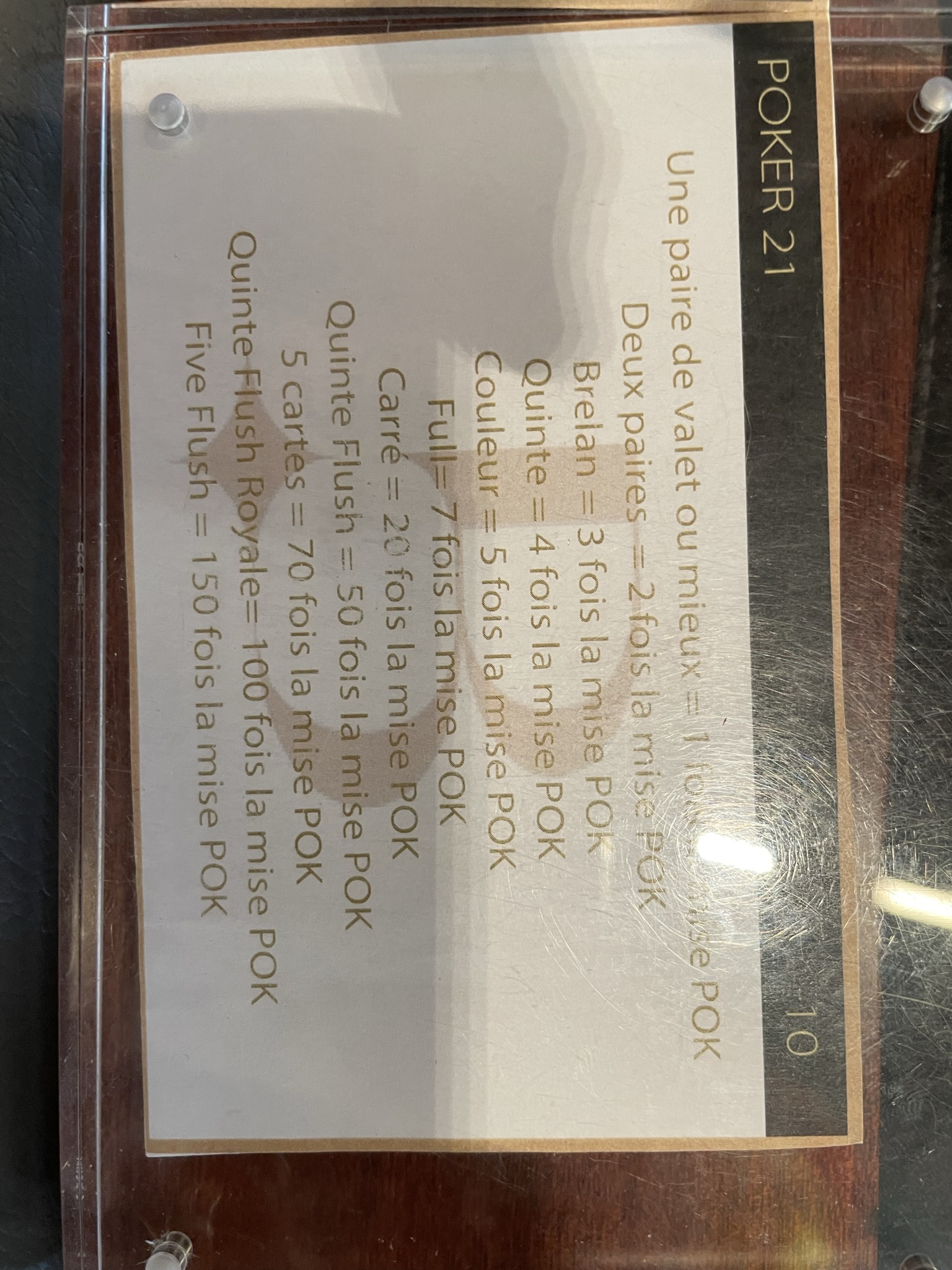 - الرهان الجانبي في بوكر ٢١ إلزامي. على ما أذكر، كان الحد الأدنى للرهان الجانبي ٢ يورو، وللبلاك جاك ٢٠ يورو.