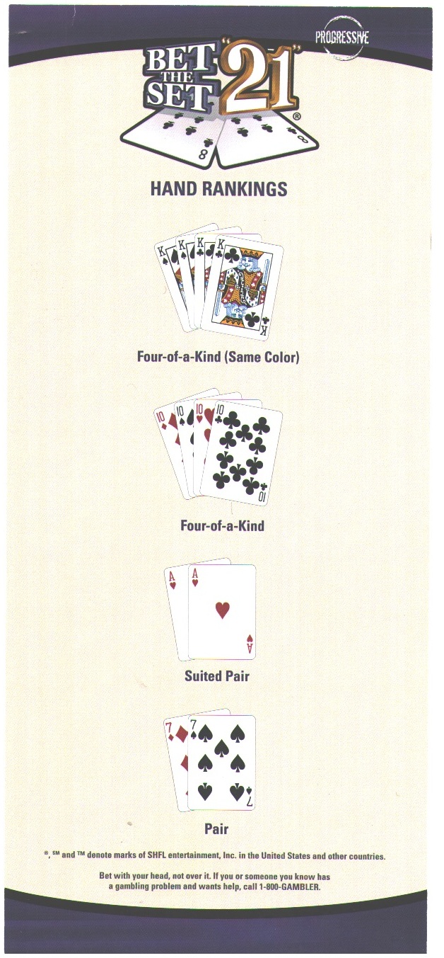 - إذا كانت البطاقات الأربع، المكونة من البطاقتين الأوليين للاعب والموزع، تتكون من أربعة ملونة من نوع واحد، فإن رهان اللاعب سيفوز بنسبة 250 إلى 1، بالإضافة إلى المبلغ الموجود في الجائزة الكبرى التدريجية.