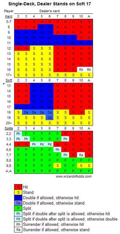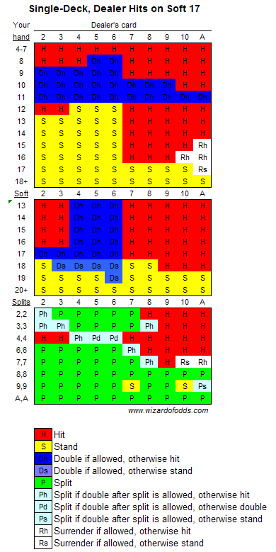 يحتوي الملحق 3A للعبة البلاك جاك على استثناءات للمجموعة الفردية من البطاقات، حيث يقف الموزع على 17 ناعمة، وتعتمد الإستراتيجية الأساسية على التكوين الدقيق ليد اللاعب.