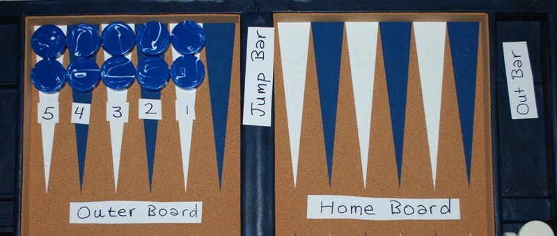 يشبه تصميم اللعبة أحد جانبي لوحة الطاولة. توضع قطعتان على اللوحة، والهدف هو رمي النرد وتحريكهما فوق الشريط بحركة واحدة، وخارج اللوحة بحركتين أو ثلاث. الرهانات والقواعد المحددة موضحة أدناه.