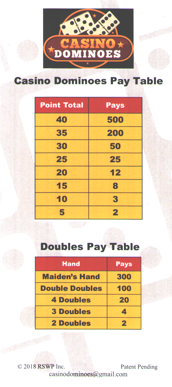 - يدفع الرهان المزدوج جائزة كبرى قدرها 300 إلى 1 إذا شكلت قطع الدومينو الأربعة يد العذراء، والتي تتكون من قطعة واحدة من كل من قطع الدومينو 6-6، و5-5، و4-4، و3-3.