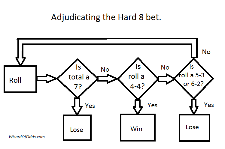 في لعبة الكرابس، تُوجد أنواع عديدة من الرهانات. بعضها يُحسم دائمًا برمية واحدة، بينما قد يتطلب البعض الآخر عدة رميات. التعريف المُعتاد لنسبة هامش الكازينو هو نسبة الخسارة المتوقعة للاعب إلى الرهان الأولي. يُحسب الدفع في هذا الحساب من قِبل جميع خبراء المقامرة تقريبًا. مع ذلك، في لعبة الكرابس، غالبًا ما يتطلب الأمر عدة رميات لحسم الرهان، مع السماح للاعب بسحب رهانه في أي وقت حتى يفوز أو يخسر.
